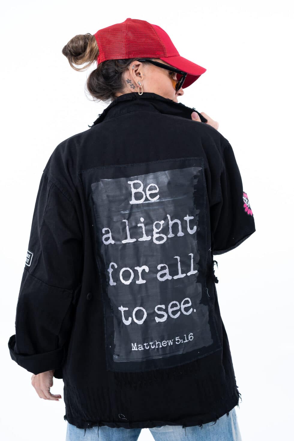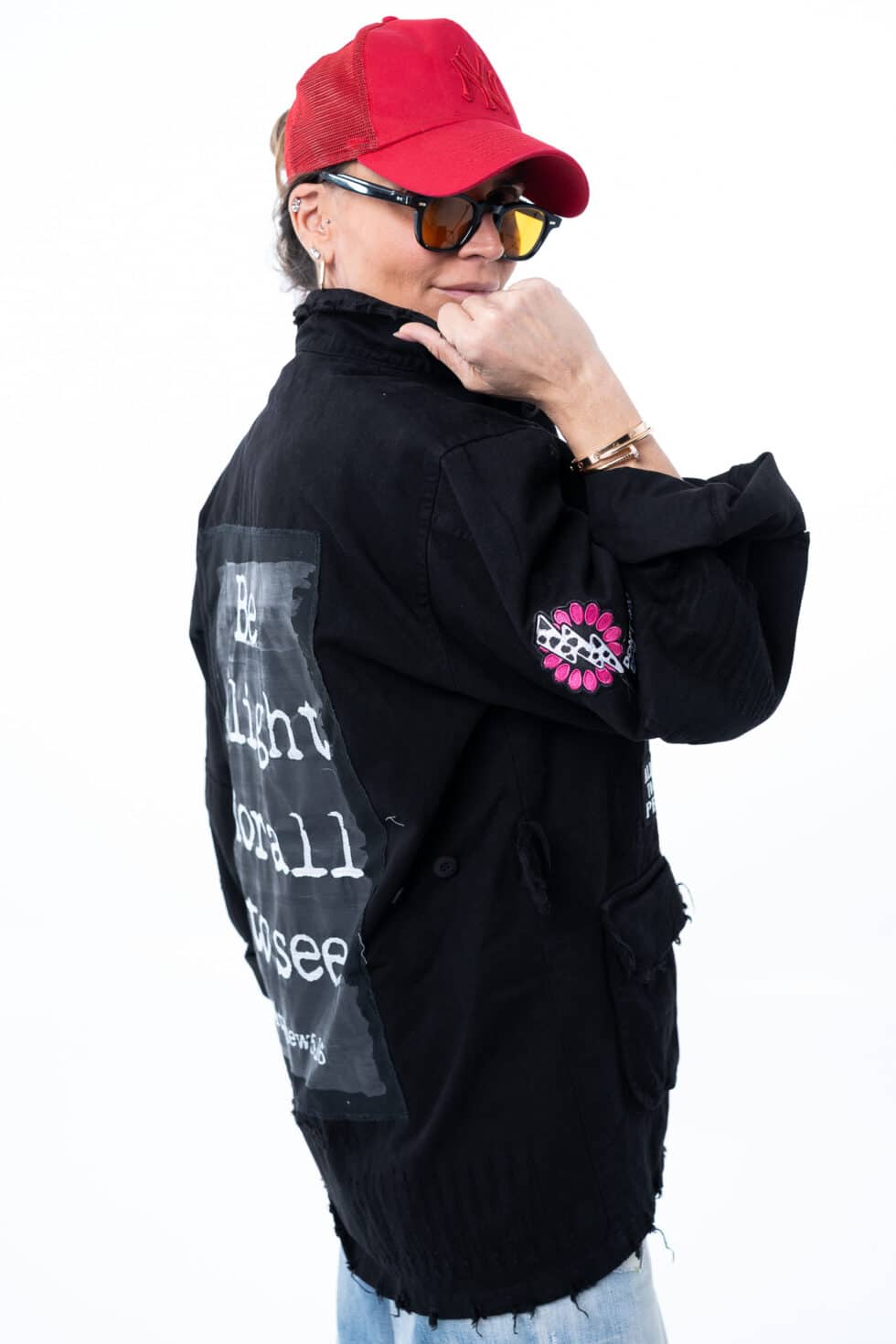 • Oversized military style with lots of authentic army patches